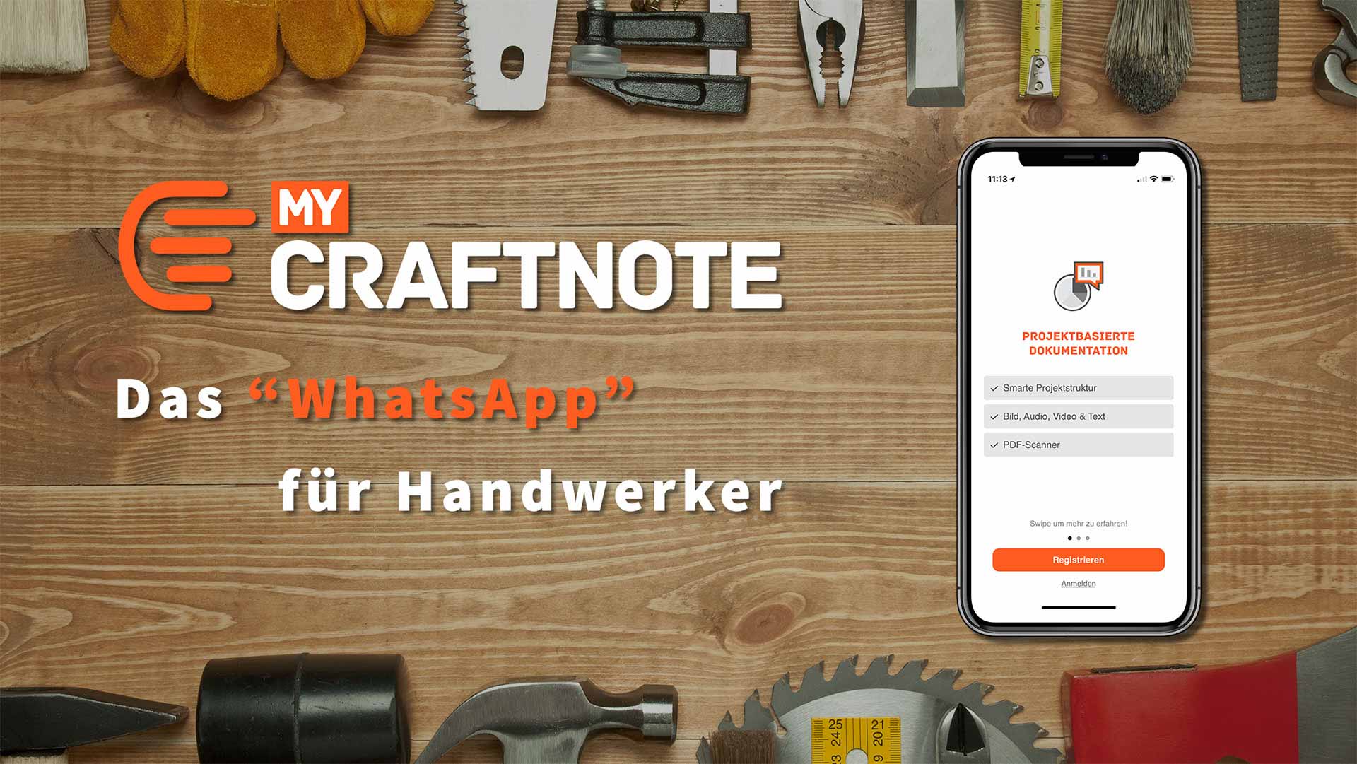 Die App myCraftnote verbindet in einfacher Weise die Kommunikation und Dokumentation aller Beteiligten auf der Baustelle. Die IT-Lösung wird bereits von mehr als 10.000 Betrieben eingesetzt. Eine Mitarbeiterverwaltung regelt die Rollen und Rechte einzelner Mitarbeiter im Betrieb. Dabei hilft die Ordnerstruktur bei der Abwicklung komplexerer Projekte. So kann zum Beispiel ein Ordner mehrere Projekte von einem Auftraggeber enthalten. Umfangreiche Projekte können nach Themengebieten wie Auftrag, Ausführung, Dokumentation, Bauherr usw. unterteilt werden. Des Weiteren unterstützen To-Do-Listen bei der Planung der Aufgaben in Projekten mit wichtigen Details zu Fristen & Verantwortlichkeiten. Tagging-Funktion ermöglicht die Verschlagwortung aller Inhalte, so können spezielle Infos den Medien hinzugefügt und später ganz einfach wiedergefunden werden. In jedem Projekt können Information zu Ort, Ansprechpartner und Rechnungsanschrift hinterlegt werden. Auch können Projekte farblich kategorisiert werden.