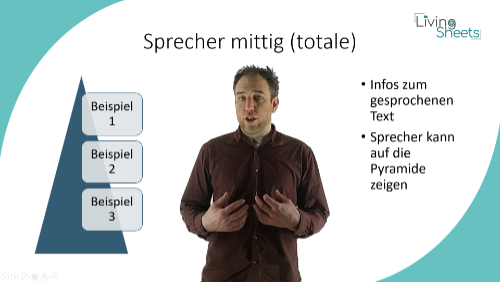 Im ersten Schritt wurde dazu eine PowerPoint-Präsentation als Video exportiert. Im Anschluss daran erstellten die Teilnehmenden ein Video, bei dem sie selber in die Kamera sprachen. Durch die Anwendung des Greenscreen-Filters innerhalb des Schnittprogrammes wurden nun beide Videos miteinander verknüpft und der Sprecher auf die Folien projiziert.